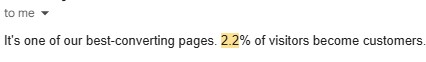 And best of all, because we don't really care about traffic, and rankings, the page converts 2.2% of all visitors into paying customers.